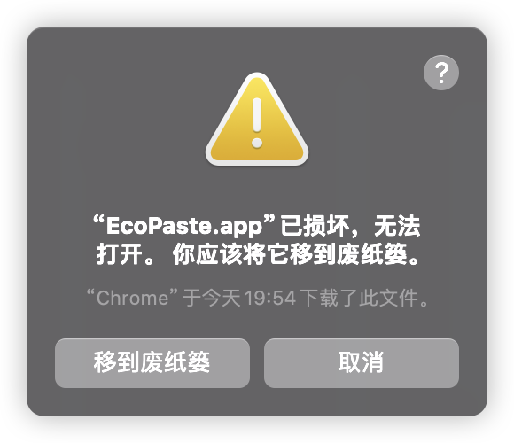 由于应用需要官方签名,才能避免安装后弹出“应用已损坏”的提示,但官方签名的费用昂贵(每年 99 美元),开源项目无法负担。因此,需要手动绕过签名以正常使用 EcoPaste。